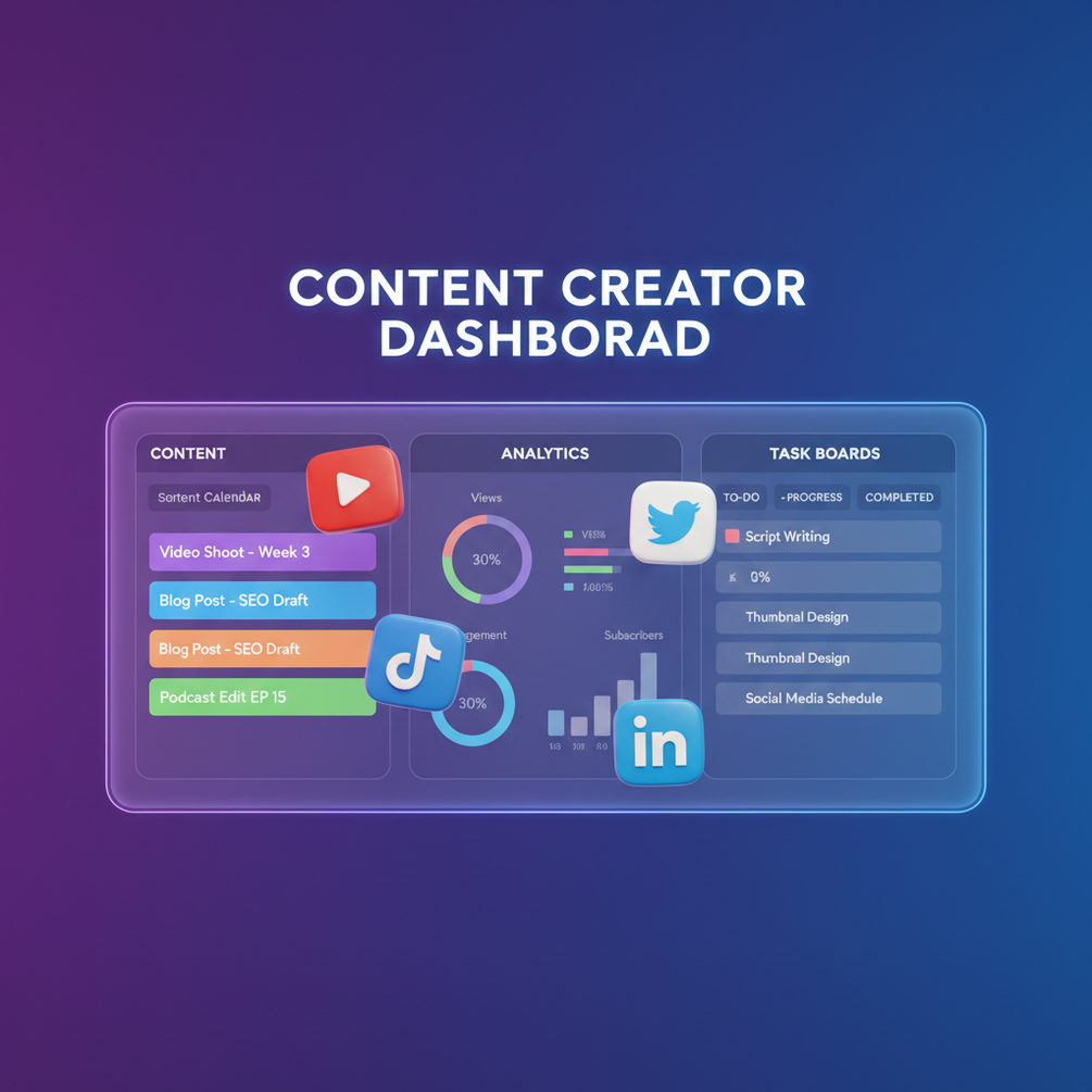 Stop juggling multiple apps and spreadsheets! The Content Creator Dashboard brings your entire content workflow into one powerful Notion workspace.